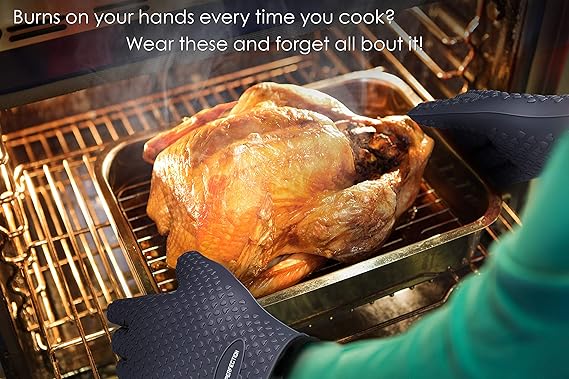 KITCHEN PERFECTION Silicone Smoker Oven Gloves-Extreme Heat Resistant BBQ Gloves-Handle Hot Food Right on Your Grill Fryer & Pit|Waterproof