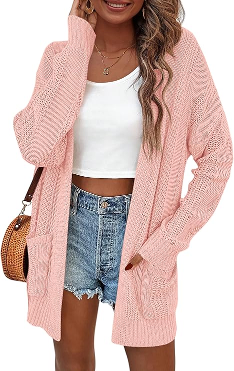 PRETTYGARDEN Women’s Fall Loose Open Front Cardigan Long Sleeve Cable Knit Sweaters Lightweight Outwear with Pockets